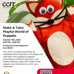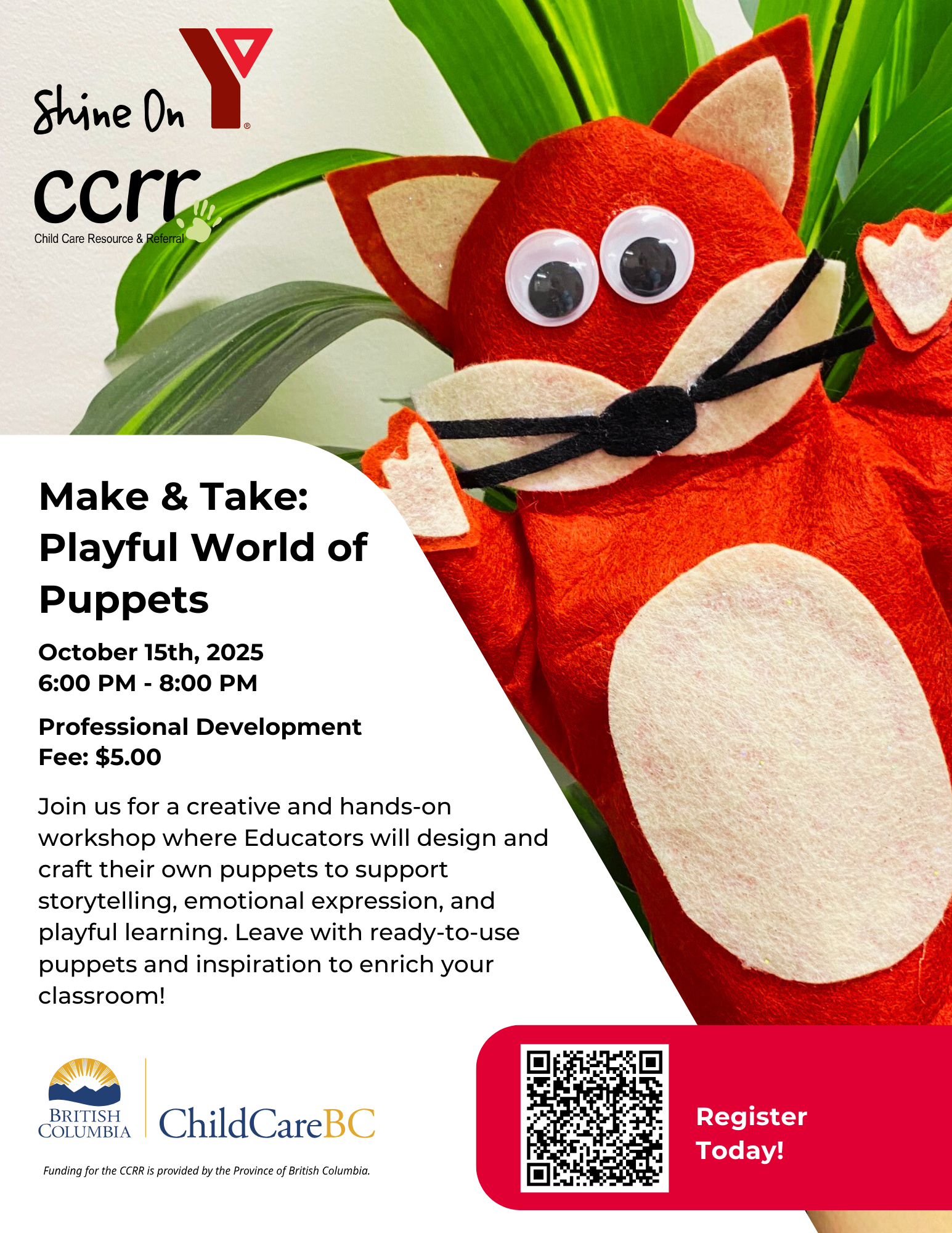 Early Childhood Educators and Child Care providers, please join us for a fun and creative workshop where you will learn how to make your own puppets and bring them to life!