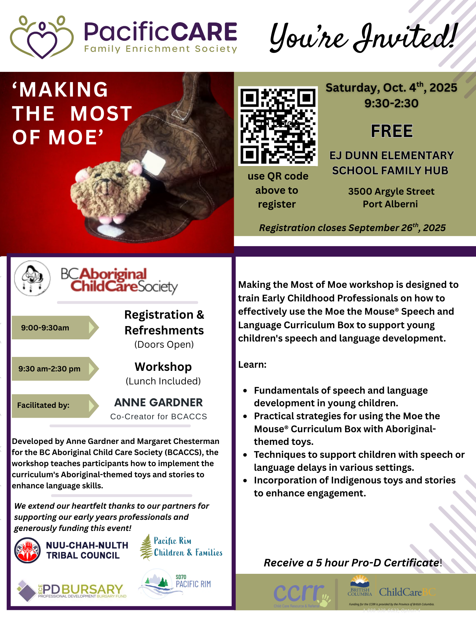 Making the Most of Moe workshop is designed to train Early Childhood Educators on how to effectively use the Moe the Mouse speech and language Curriculum box to support young children’s speech and language development.