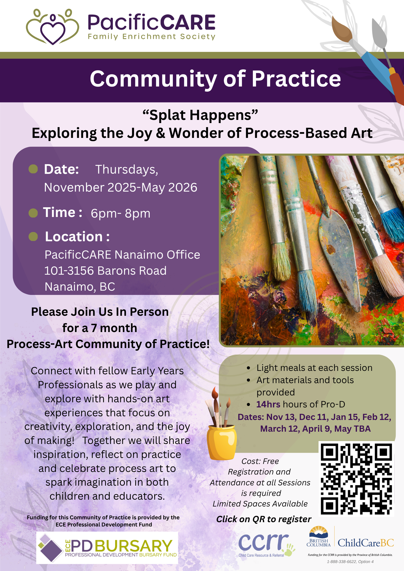 Join Us for a 7 Month – Splat Happens- Process Based Art Community of Practice. Connect with fellow Early Years Professionals as we play and explore with hands-on art experiences that focus on creativity, exploration, and the joy of making! Together we will share inspiration, reflect on practice and celebrate process art to spark imagination in both children and educators.