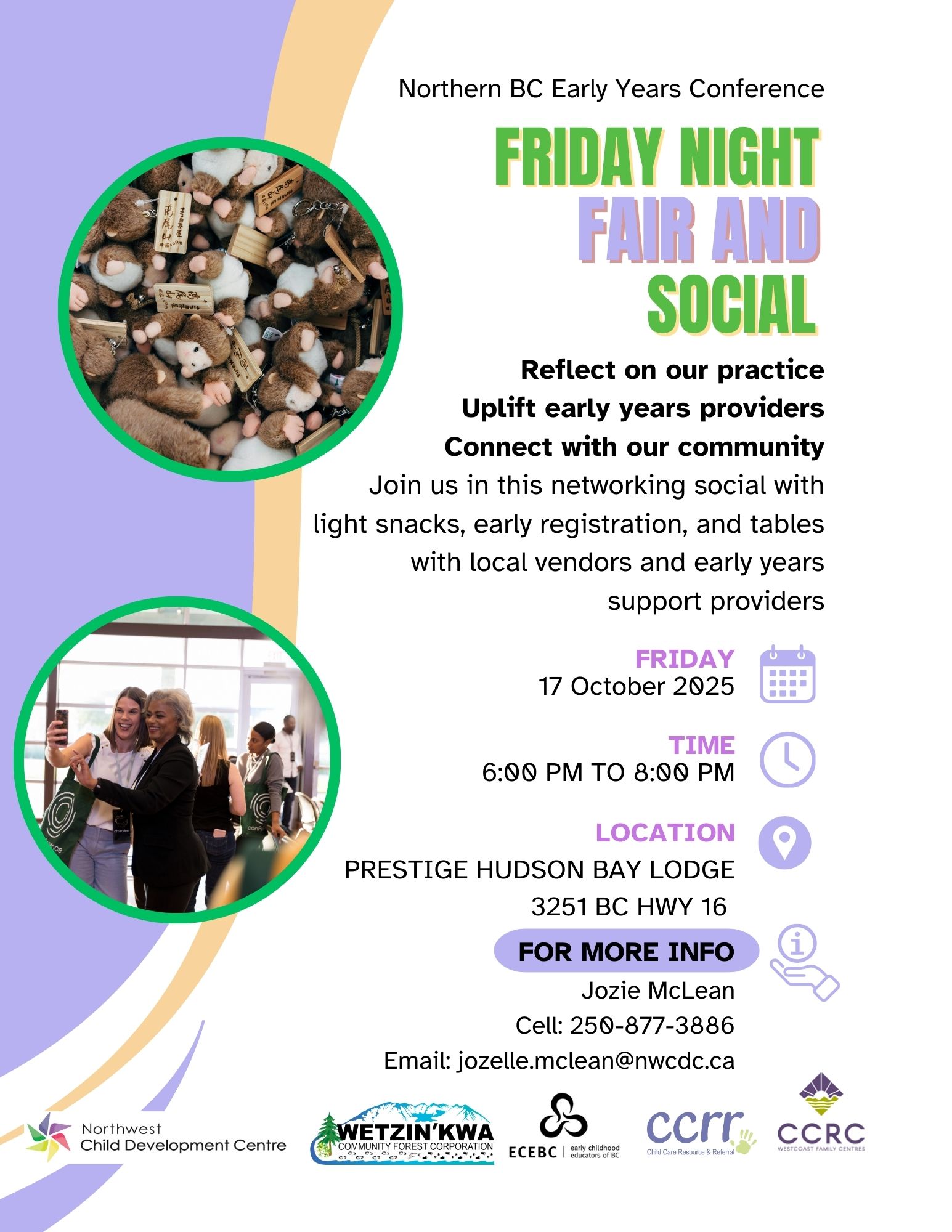Smithers and Area CCRR and ECEBC Bulkley Valley Branch are partnering to present this conference. Our goal is to provide professional development, increase capacity in northern communities, reduce barriers to quality care, and uplift our northern child care providers.