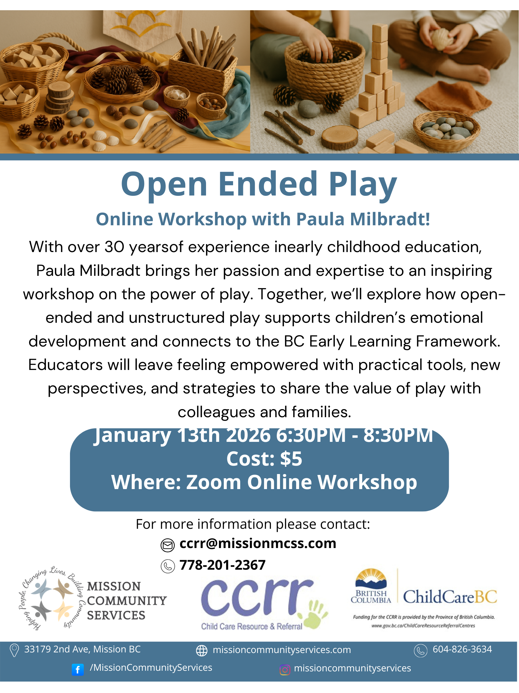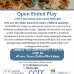 workshop on the power of play. Together, we’ll explore how openended and unstructured play supports children’s emotional