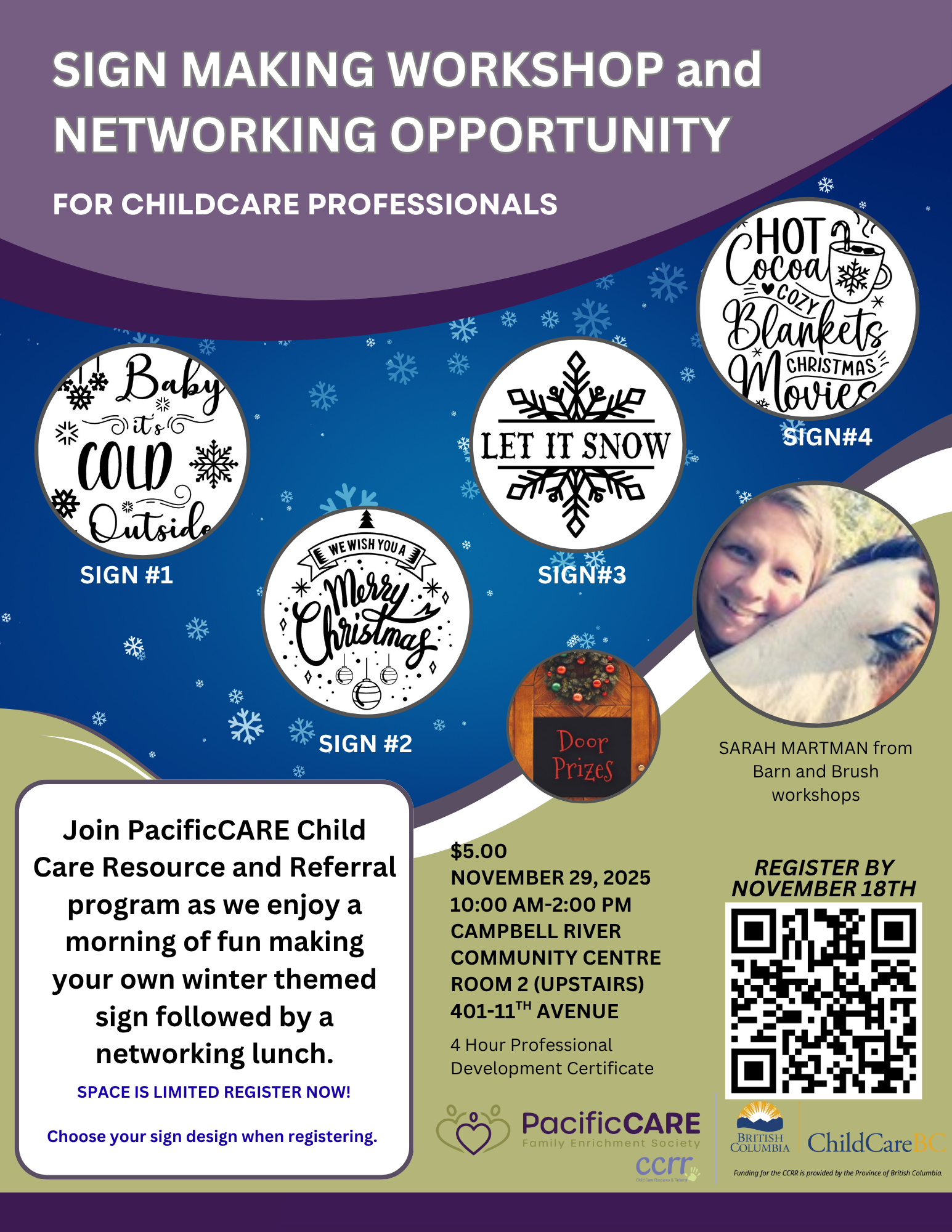 Holiday Sign Making workshop and networking opportunity for child care providers in the Campbell River area