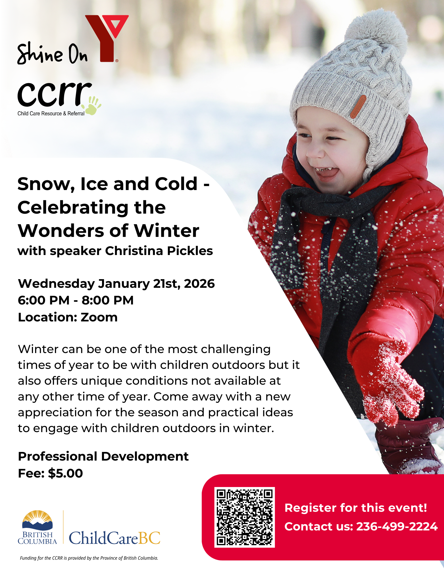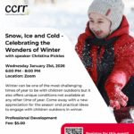 Winter can be one of the most challenging times of year to be with children outdoors but it also offers unique conditions not available at any other time of year. In this session we will learn to celebrate snow, cold and ice, the three wonders of winter! Come away with a new appreciation for the season and practical ideas to engage with children outdoors in winter.