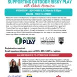Research is clear on the importance of regular and repeated access to outdoor and risky play. Community and home environments provide important opportunities for children to enhance their play experiences and take on new challenges. This session will outline the benefits of outdoor and risky play and how parents, families, and educators can support this form of play in their children’s lives. Learn about the key ingredients to enhance outdoor and risky play (‘time’, ‘space’ and ‘freedom’) and how you can begin to incorporate these into a child’s everyday life. This is an interactive workshop that will work through real examples from the field, examine emerging research across British Columbia, and provide supportive next steps on your journey towards supporting children’s outdoor and risky play.