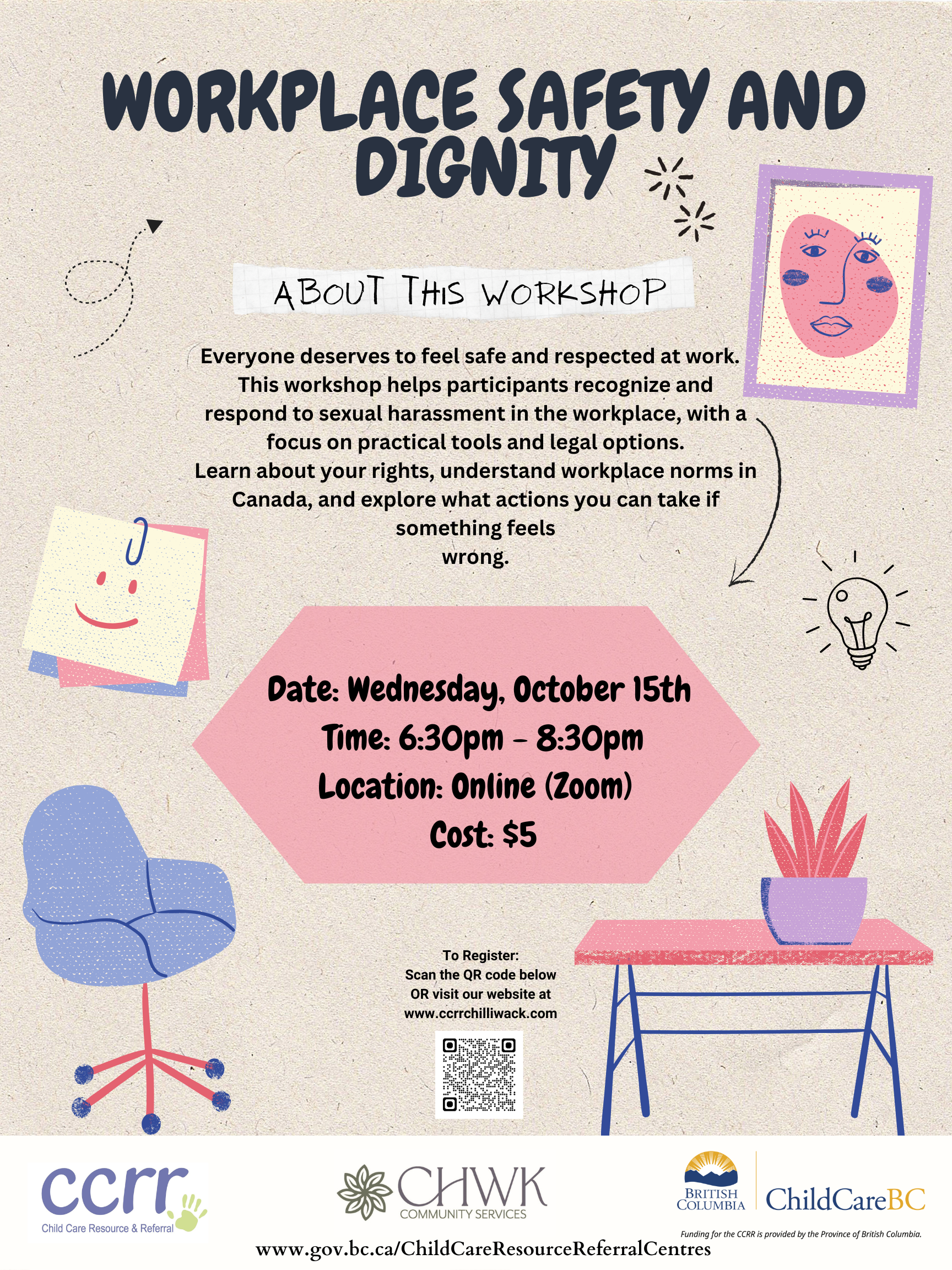 Everyone deserves to feel safe and respected at work. This workshop helps participants recognize and respond to sexual harassment in the workplace, with a focus on practical tools and legal options. Learn about your rights, understand workplace norms in Canada, and explore what actions you can take if something feels wrong.