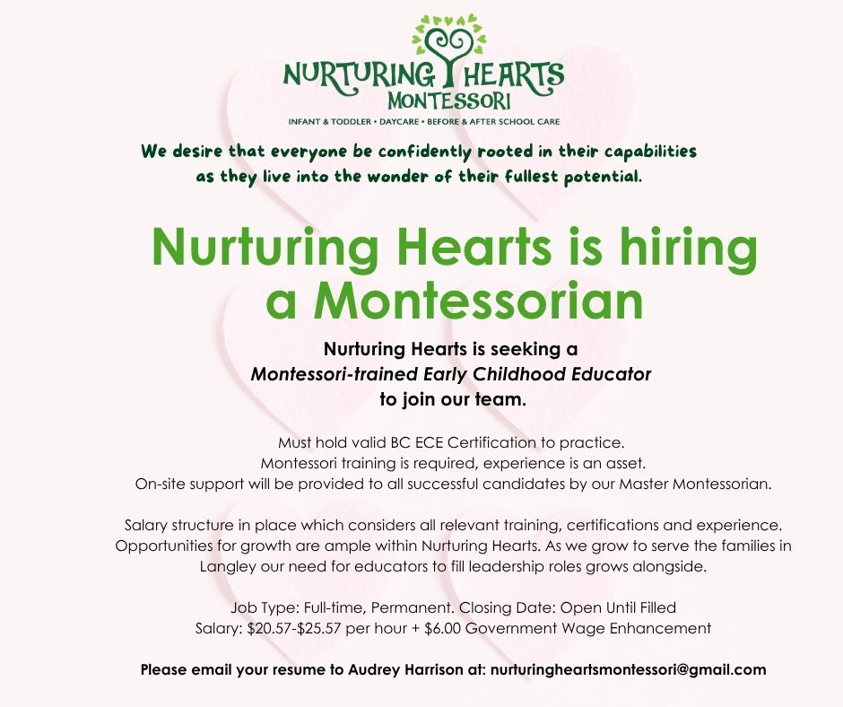 To apply for this job email your details to nurturingheartsmontessori@gmail.com