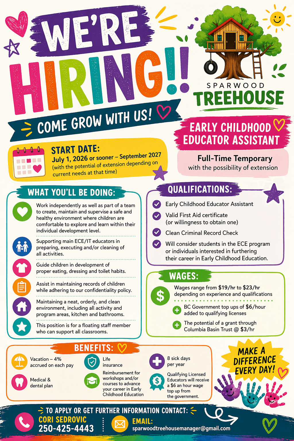 To apply for this job email your details to sparwoodtreehousemanager@gmail.com